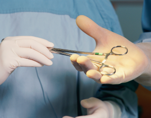 Uso de clips, grampos, compressas, afastadores e aspiradores cirúrgicos